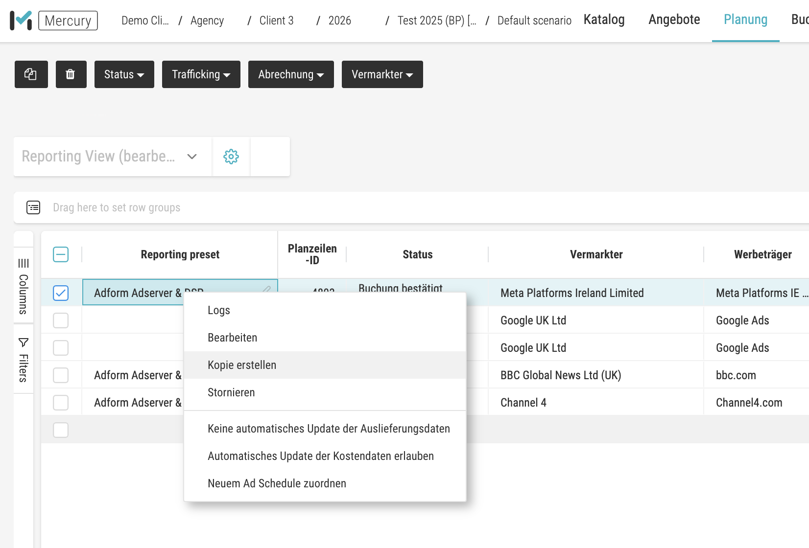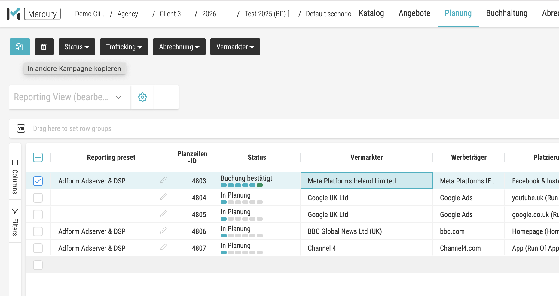 - Vermarkter, Werbeträger und Platzierungen sind vorhanden