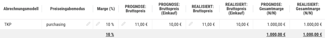 Je nach gewähltem Preiseingabemodus verändert sich die Berechnung der Marge wie folgt: