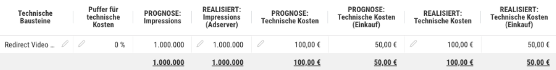 Zeigt die automatisch berechneten Kosten der Technischen Bausteine basierend auf deren Verkaufspreis und dem Volumen der Planzeile.