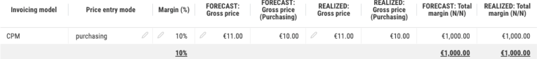 This column is calculated automatically and shows the price without the margin — your internal purchase condition.