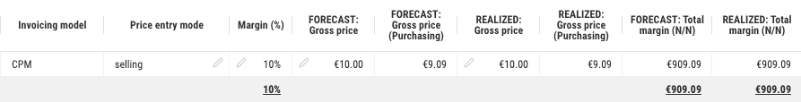 Example:You enter €10 as the sales price and set a 10% margin. Mercury calculates: €10 × 0.9 = €9 (purchase price).